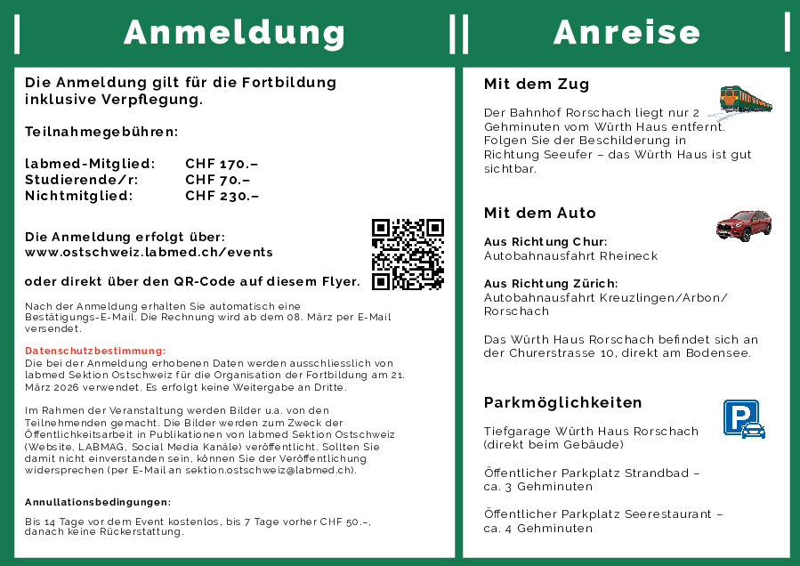 Infektionen begleiten uns täglich – sichtbar oder verborgen. Unter dem Motto «Sichtbare Spuren von unsichtbaren Erregern» lädt die labmed Sektion Ostschweiz am 21. März 2026 zu einer ganztägigen Fortbildung ins Würth Haus Rorschach ein.